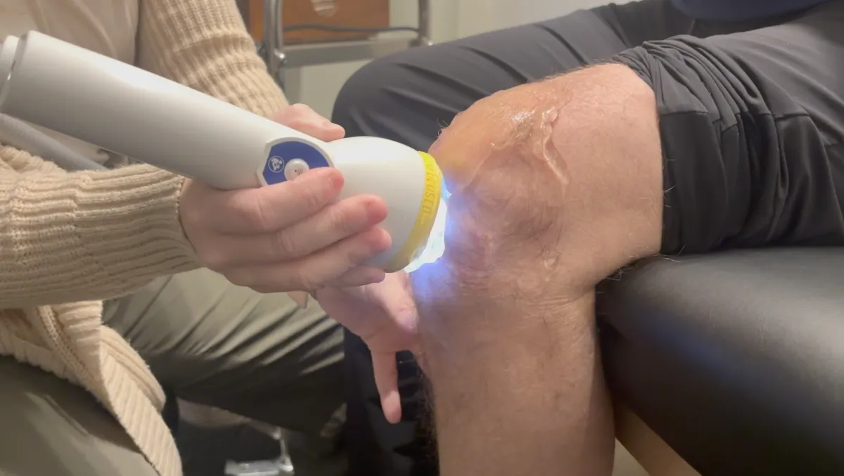 Trauma to the tendons can generate calcified fibroblasts in the injured area. Calcified fibroblasts cause chronic pain which decreases mobility. Using acoustic wave pulses, calcification is cleared from the damaged area after being broken into small particles that are easily absorbed by the body. This reduces pain and restores function.